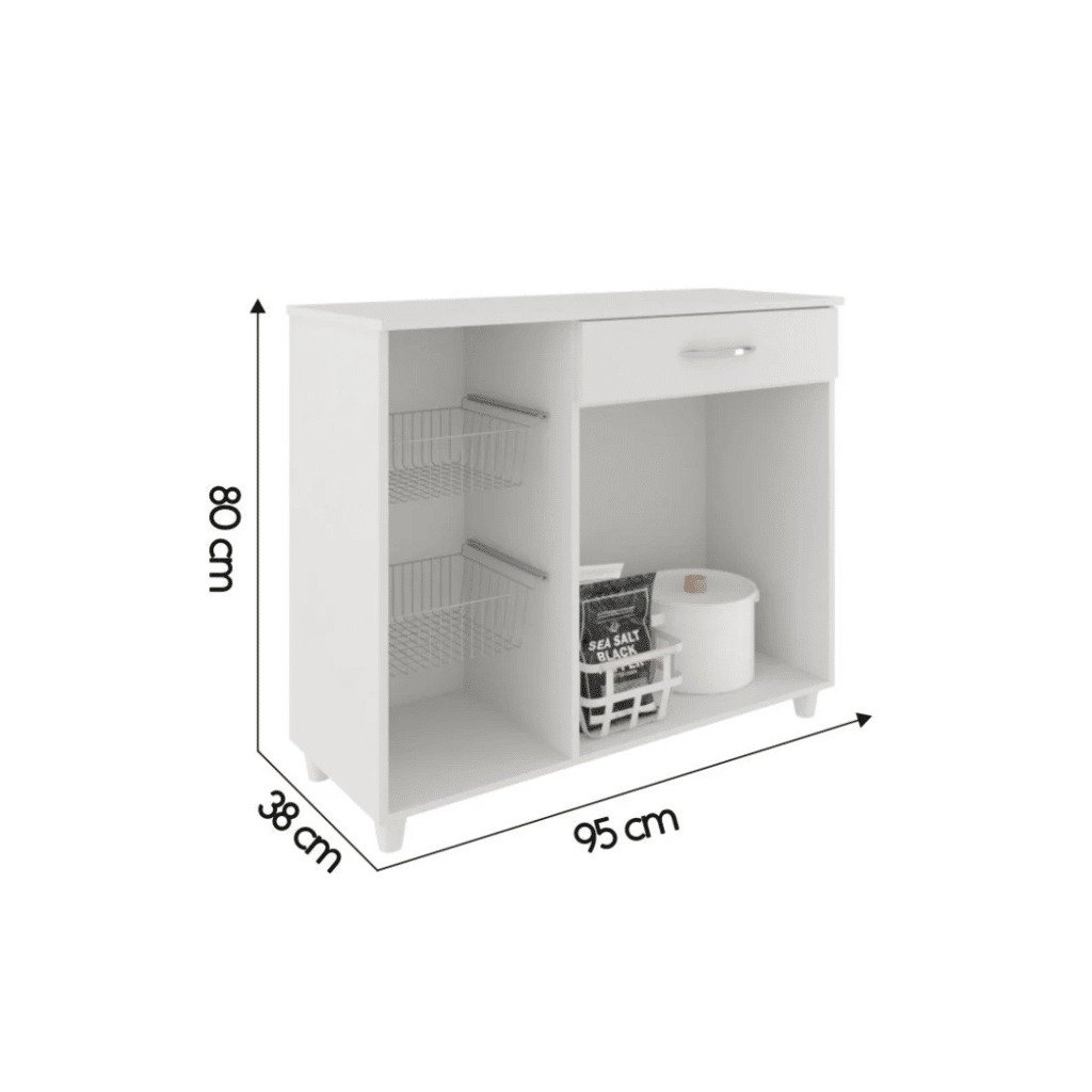 1 gaveta com corrediças metálicas;