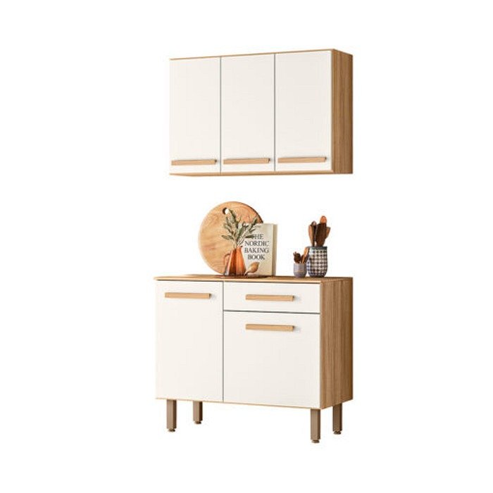 Combo Cozinha Lemon Freijó / Off White Cristal – Nicioli (Balcão + Aéreo 91c m)