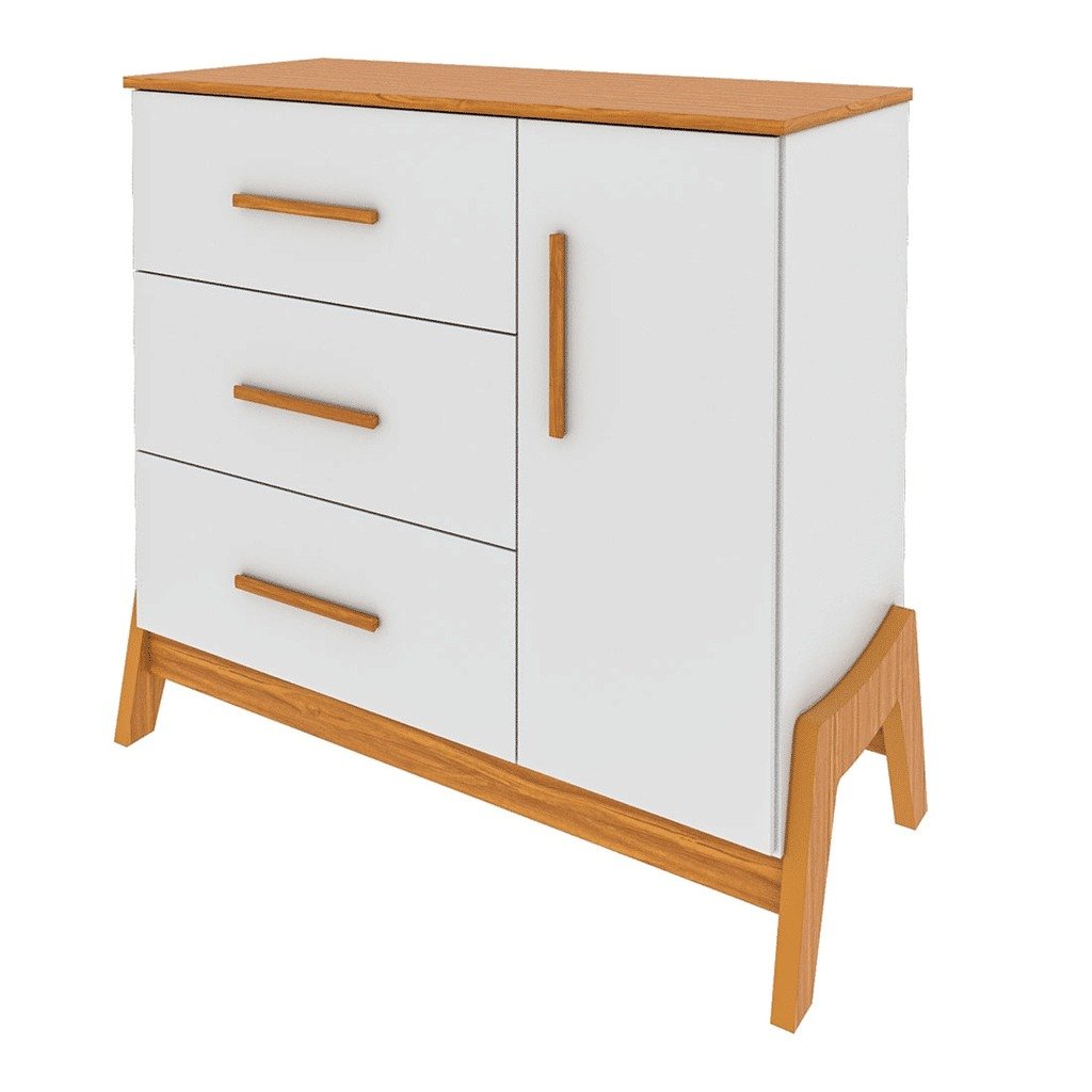 A Cômoda Guti é projetada para oferecer elegância e praticidade. Seu design compacto e moderno é ideal para diversos tipos de ambientes, desde quartos até salas de estar. Com uma porta e três gavetas, ela proporciona um espaço de armazenamento eficiente para roupas, acessórios, documentos e outros itens essenciais.