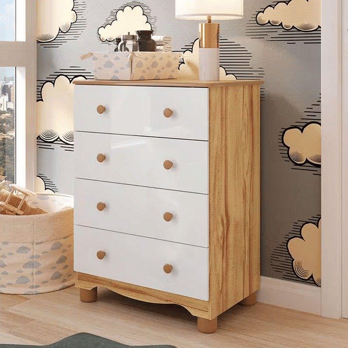 Cômoda para Quarto Infantil em MDF 4 Gavetas Peroba Junior