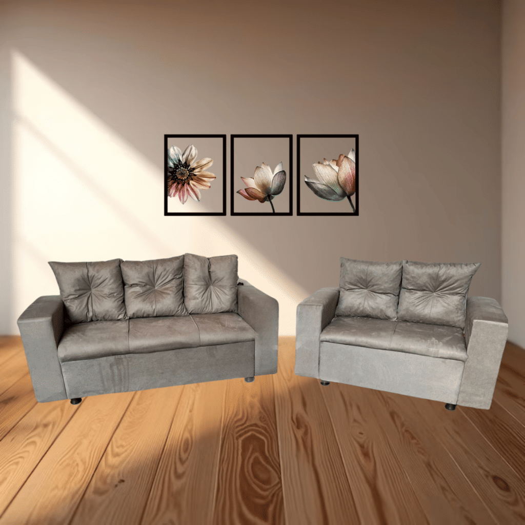 Apresentamos o Conjunto de Sofás Ilhéus 2 e 3 Lugares da Malu Estofados, a combinação ideal de conforto, qualidade e design. Com revestimento em tecido sued macio e estrutura resistente em madeira de lei tratada, este conjunto proporciona momentos de relaxamento e bem-estar para você e sua família.