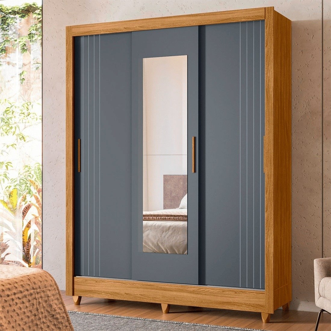 Materiais de primeira linha: pintura UV, puxadores em MDF e cabideiros em alumínio