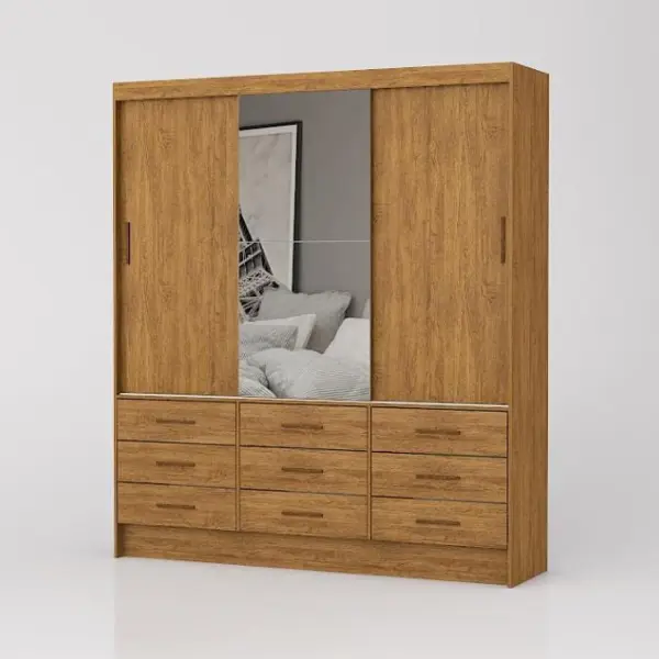 Guarda Roupa Sevilha Casal com Espelho 3 Portas 9 Gavetas Carioca Cor Cinamomo