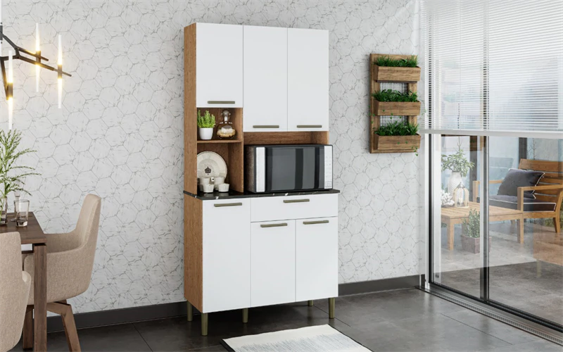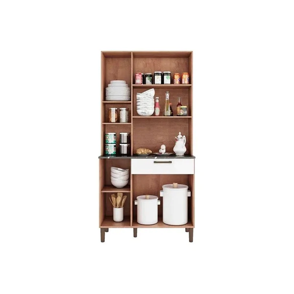 Descrição do ProdutoMarca: Cozinhas RonipaDimensões(Cm): Comprimento(Profundidade): 91,00 x Largura: 37,00 x Altura: 183,00CARACTERÍSTICAS DE MÓVEISTipo de Estrutura do Móvel- 100% MDFTipo de Pintura- UV (Ultravioleta)Tipo de Acabamento da Pintura- Semi BrilhoEspessura do Tampo- Tampo c/ 15mmTipo de puxador- ABS / PVC CromadoQuantidade de Prateleiras- 3 PrateleirasQuantidade de Gavetas- 1 GavetaDiferenciais da Gaveta- Corrediças TelescópicasQuantidade de Portas- 6 Portas de AbrirQuantidade de nichos- 1 NichoDiferenciais dos Nichos- Nicho para microondasGarantia- 3 Meses