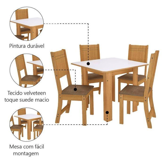 Cor da Mesa = Estrutura: Freijó / Tampo: Off White