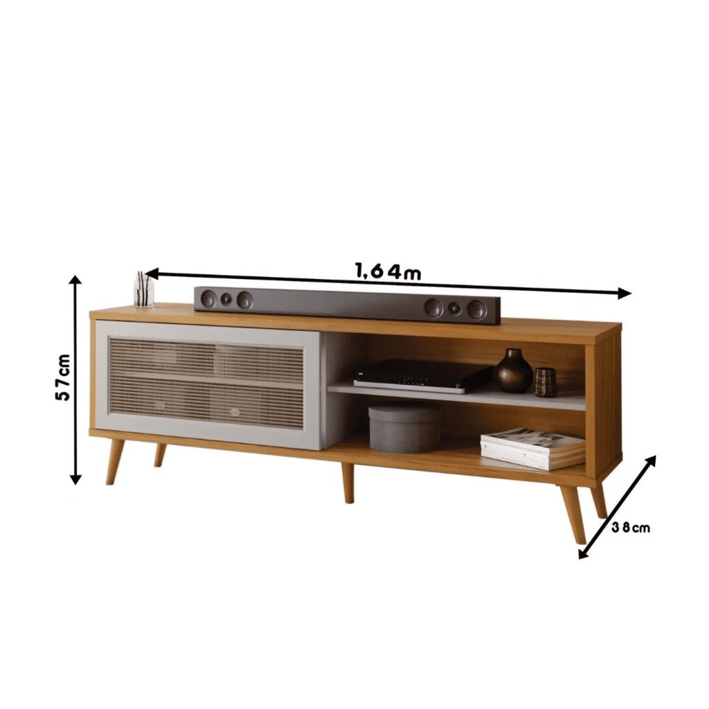 • Organização prática: espaço interno amplo com prateleiras, ideal para equipamentos como decodificadores, consoles e players, com ventilação graças à tela em PVC